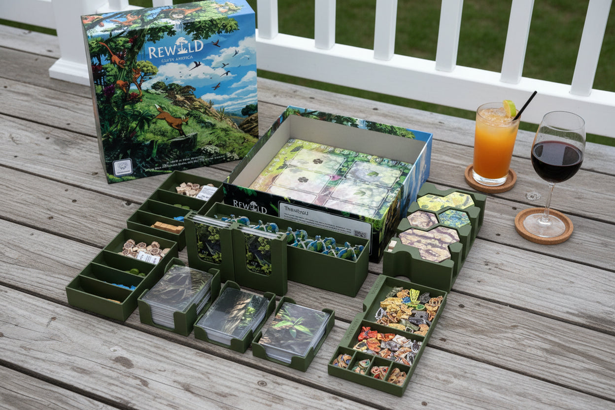 Keep your Rewind South America adventure organized and ready to roll! These custom-designed game inserts (9 in total) transform your box into a perfectly organized command center. Each component has its designated spot—cards stay crisp, tokens stay put, and setup time vanishes. Say goodbye to rummaging through a jumbled box and hello to smooth, speedy gameplay. Perfect for serious collectors and casual players alike, these inserts make every game night feel like a breeze. Your future self will thank you!